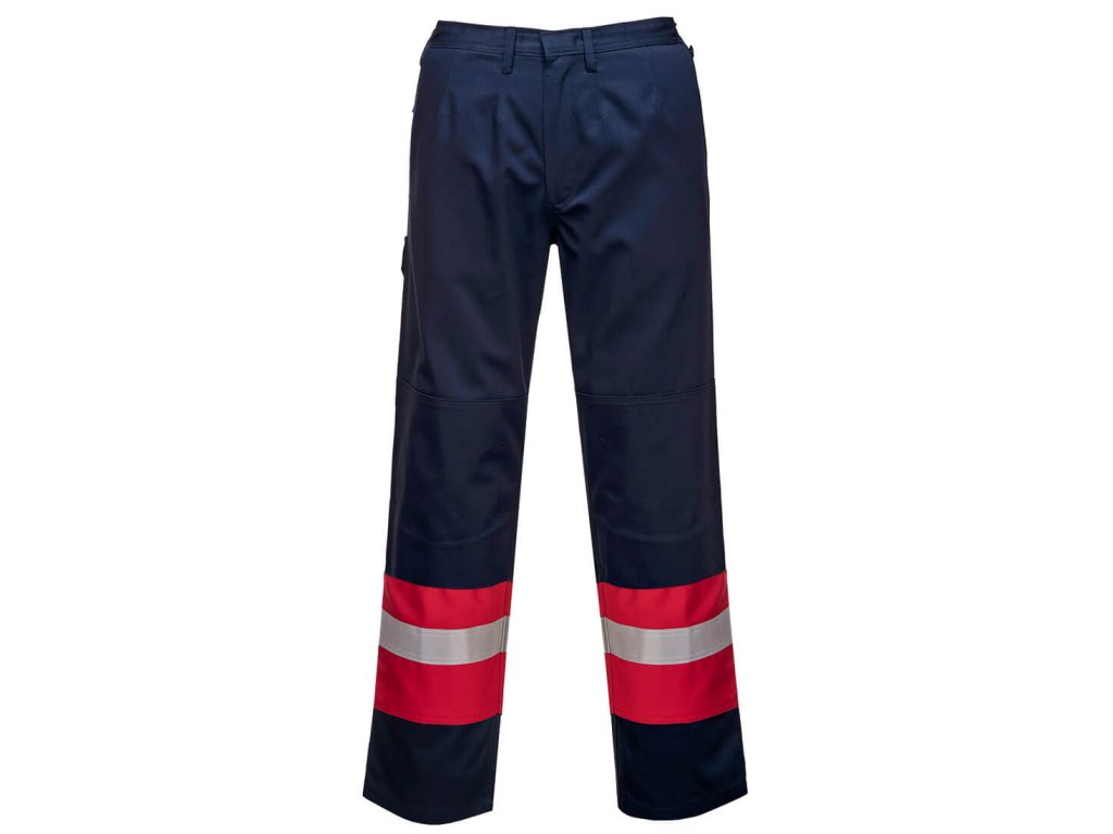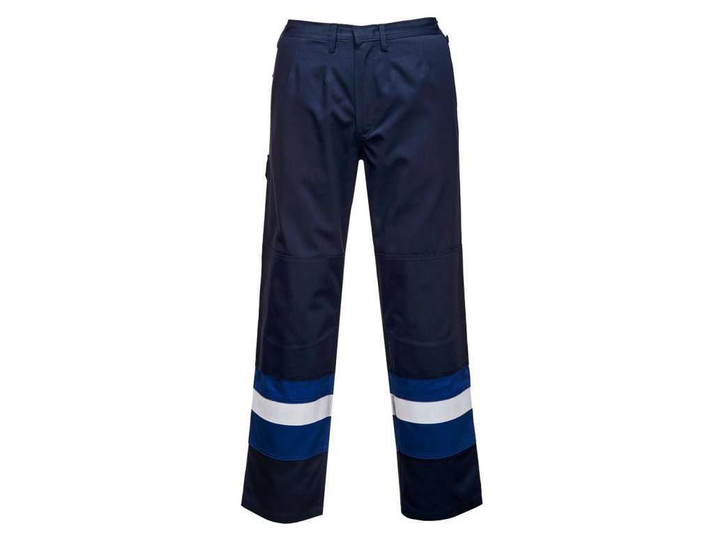 Reflexní pruhy s vysokou viditelností dvakrát prošité. Trojité prošití oděvu, reflexní pruhy na nohavicích, kapsy na kolenní vložky, kapsa na metr, přední zip.