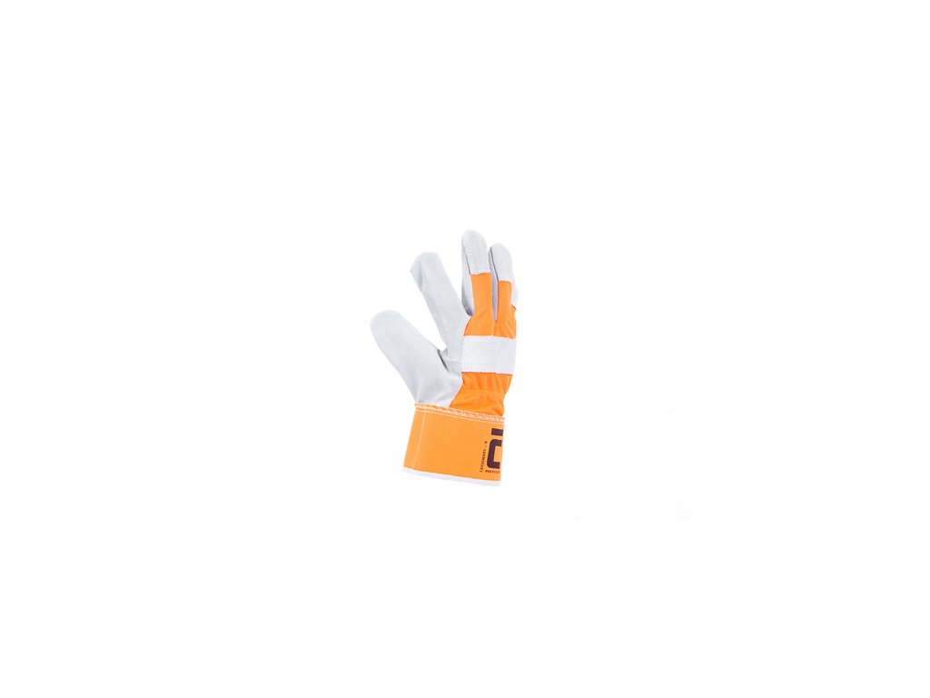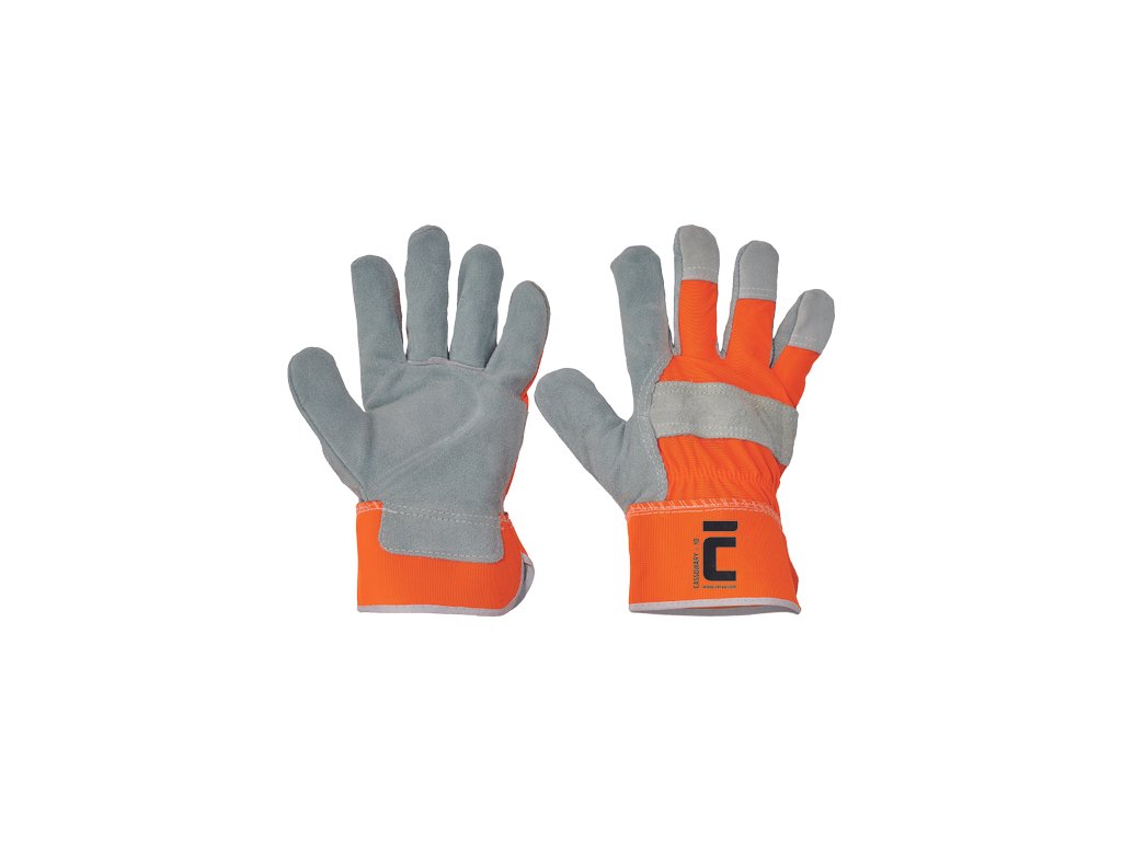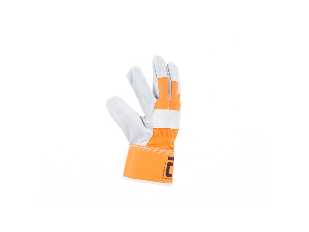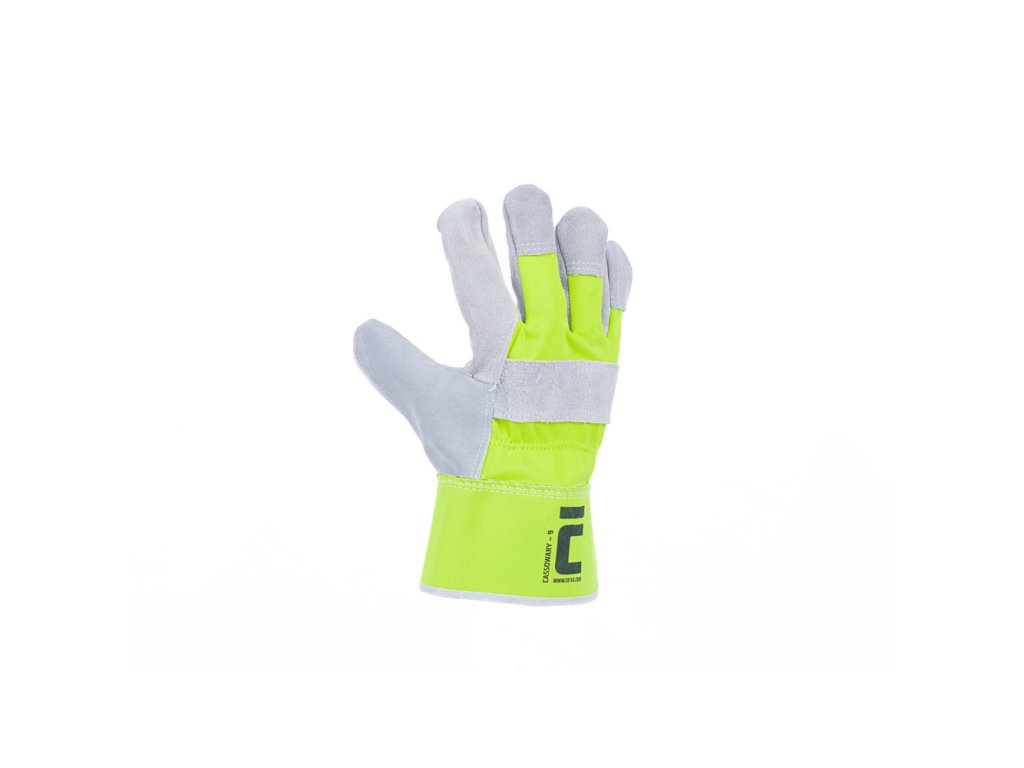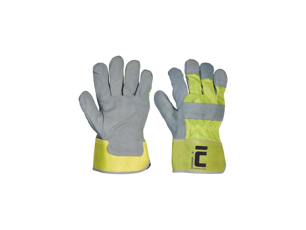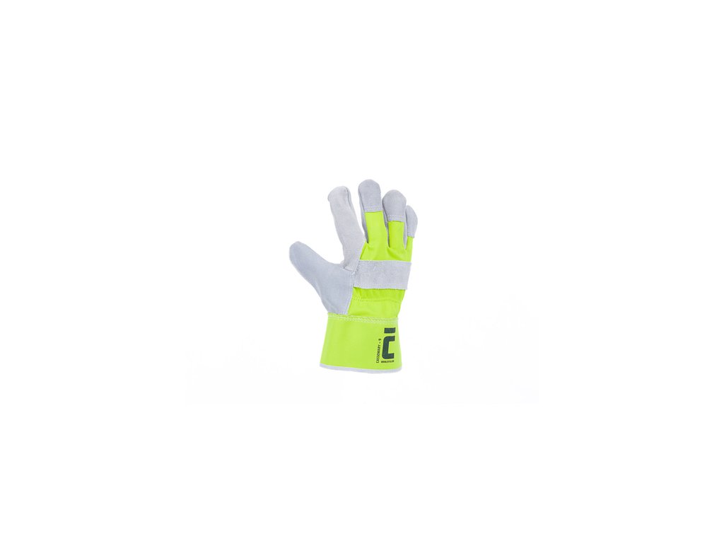 • rukavice z jednobarevné hovězí štípenky v dlani • s podšívkou • polyesterový úplet v reflexní barvě na hřbetu a manžetě