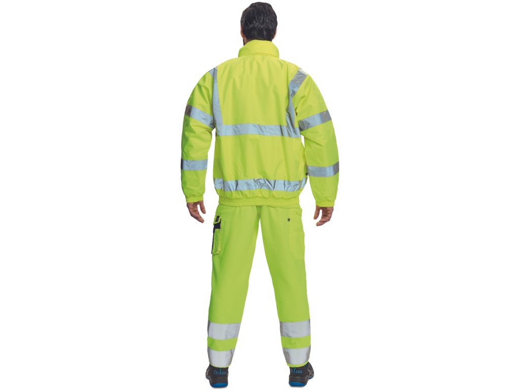 • pánská HI-VIS zimní nepromokavá pilotní bunda s integrovanou kapucí, prodyšná • reflexní pruhy přes ramena a okolo hrudi, boků a rukávů • 2 boční kapsy s chlopní, 1 vnitřní kapsa • elastické manžety a spodní lem • zapínání na zip kryté légou