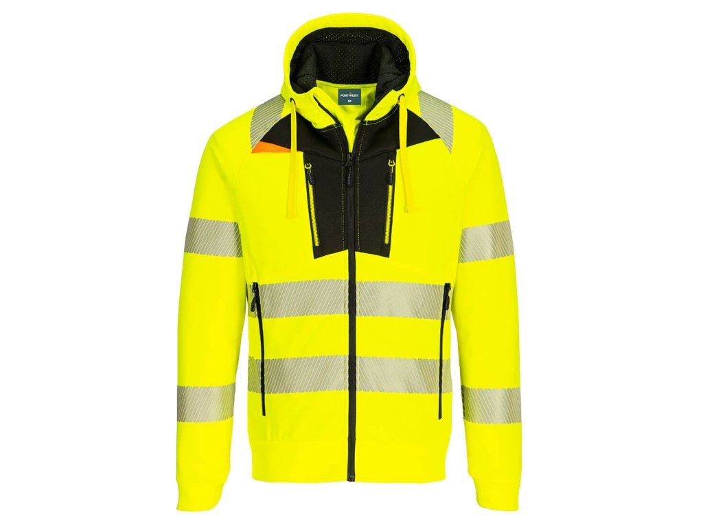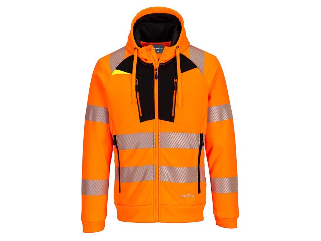 Mikina na zip s kapucí s vysokou viditelností DX4 je inovativní a technická, má fleecovou tkaninu, která poskytuje extra teplo, a segmentovou pásku HiVisTex Pro pro neomezený pohyb. Dvě kapsy na zip a boční vstupní kapsy nabízejí dostatek bezpečného úložného prostoru. Plné zip na přední straně má gumový stahovák pro snadné uchopení a nastavitelná kapuce. Moderní volba pro moderní pracovníky.