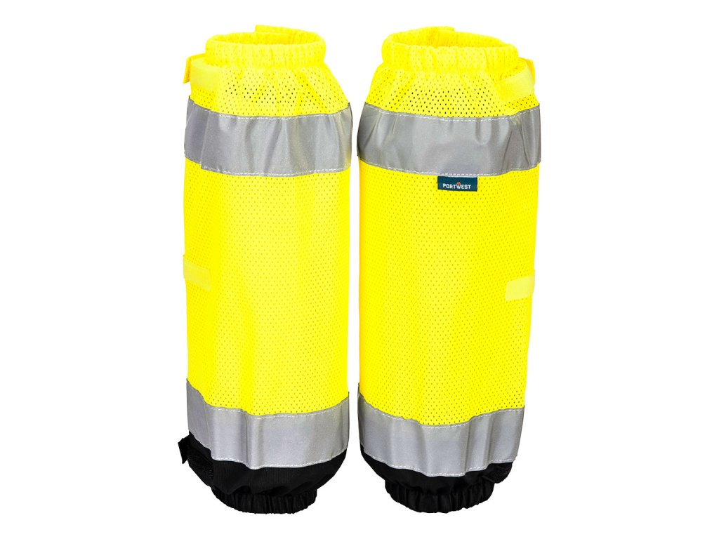 Tyto výstražné návleky mají dva pásy reflexní pásky pro lepší viditelnost a kontrastní látku pro zvýšenou ochranu proti znečištění. Jsou nastavitelné pomocí suchého zipu pro snadné sundání.