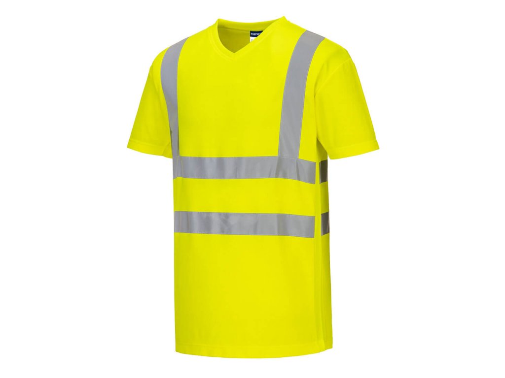 Toto moderní tričko s výstřihem do V kombinuje špičkovou kvalitu tkaniny Cotton Comfort s bočními síťovanými klíny pro generování proudění vzduchu a 4cm mezerou v reflexní pásce pro větší pohodlí. Tento oděv udrží nositele v chladu v pracovním prostředí s vysokou teplotou.