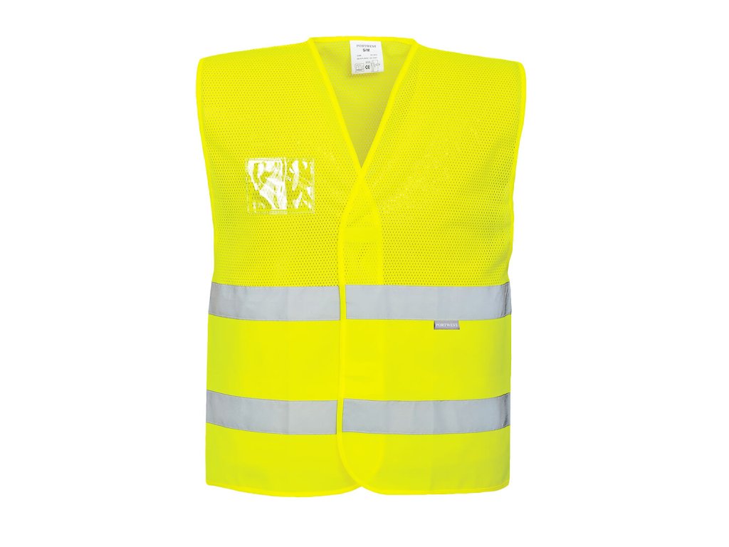Prodyšná vesta ze síťoviny s jmenovkou pro teplá pracovní prostředí.