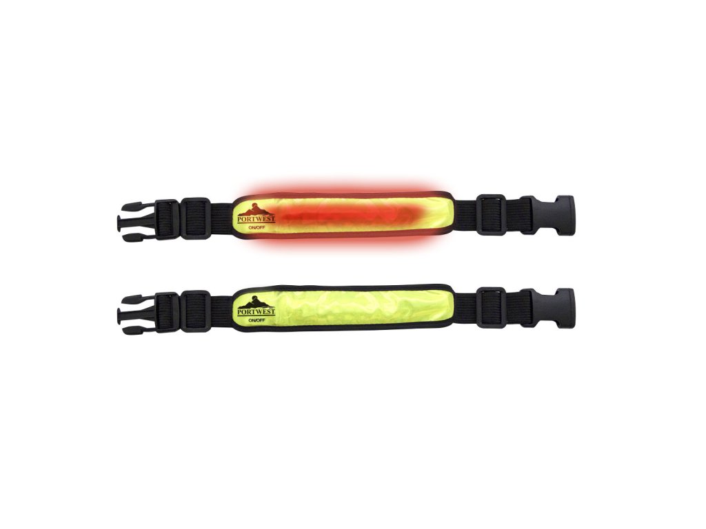 Nastavitelná páska s reflexním panelem, malá, lehká, pohodlná ochranu. Nabízí pohodlnou ochranu svému nositeli. Panel se rozsvítí při stisknutí tlačítka a vydává zářivě červené světlo pro zvýšenou viditelnost. Plné světlo a pulsní svícení. Výdrž baterie 80 hodin.,Baterie CR2032, 3V.