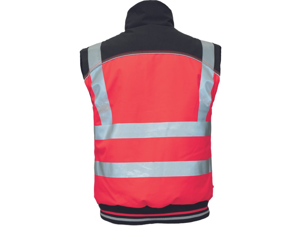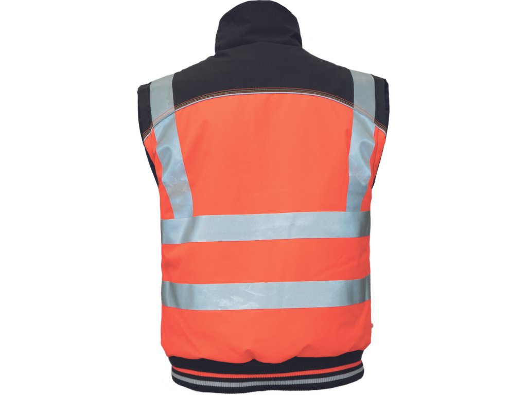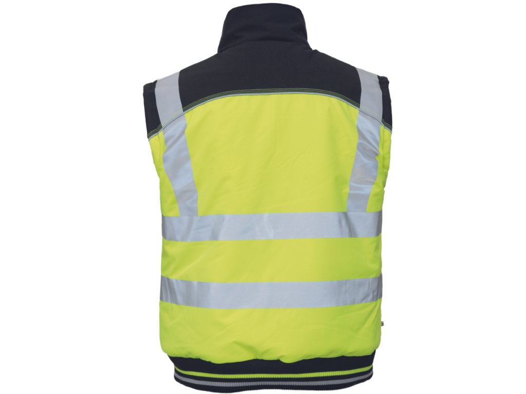 • oboustranná pánská zateplená vesta • jednostranná HI-VIS vrstva s tištěnými 5 cm reflexními pruhy • oboustranně využitelné boční kapsy • 600D Oxford zesílení v oblasti ramen • reflexní paspulky • elastický náplet v pase