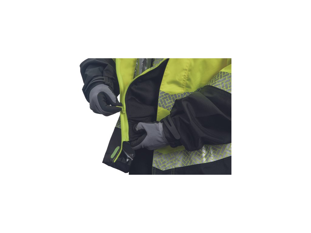 • pánská větru a vodě odolná HI-VIS bunda s odepínací kapucí • zip krytý légou s uchycením na suchý zip • nastavitelná šíře spodního obvodu stahovací šňůrkou • nastavitelná šíře obvodu rukávů na suchý zip • 2 postranní kapsy na zip • 1 náprsní kapsa na zip • 1 vnitřní kapsa na zip • 100% PES termoizolační podšívka • reflexní paspulky a segmentované reflexní pruhy • poutka na přichycení vnitřních volitelných bund