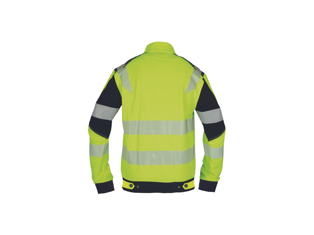 • pánská HI-VIS bunda • inovativní materiál TRIFIBETEX VIS® • zapínaní na YKK zip • 2 náprsní kapsy na zip • 2 boční kapsy • CORDURA® zesílení v oblasti ramen • trojité prošití • nastavitelná šíře manžet rukávů pomocí dvojice druků • tištěné reflexní segmentované 7 cm pruhy okolo pasu, rukávů a přes ramena