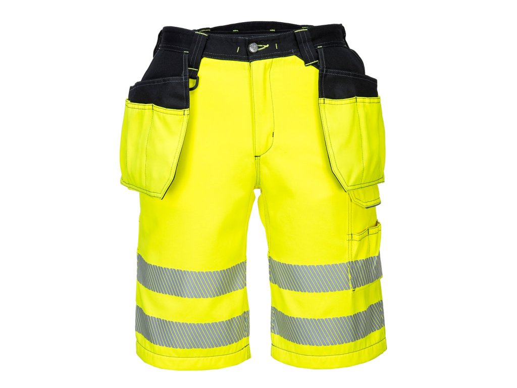 Stylové a dynamické kraťasy PW3 Hi-Vis Holster jsou navrženy v moderním designu pro vynikající pracovní pohodlí. Četné kapsy včetně odnímatelných kapes na pouzdro, kapsa na doklady, kapsa na metr a snadné přístupné stehenní kapsy poskytují vynikající bezpečnost pro osobní věci. Mezi prvotřídní funkce patří reflexní páska HiVisTex Pro, vyztužené panely v oblastech s vysokým opotřebením pro maximální odolnost.