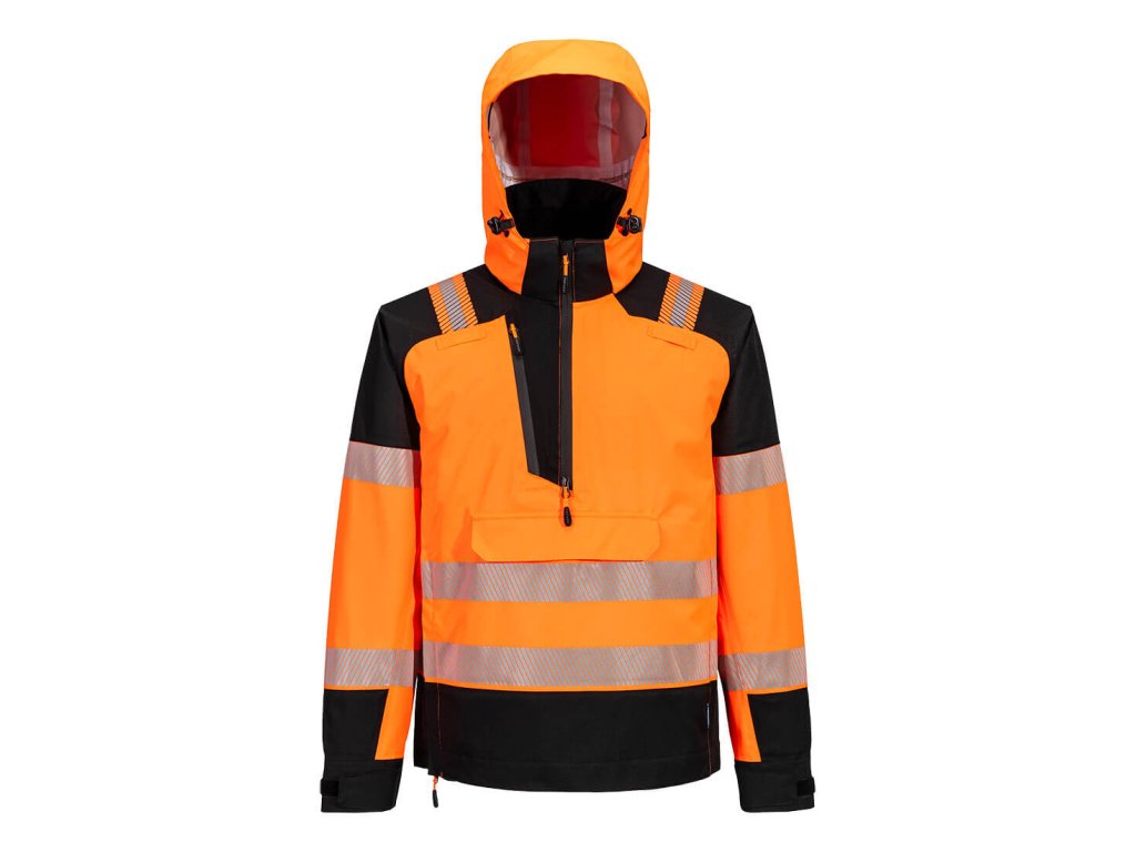 Bunda PW3 s vysokou viditelností přes hlavu navržená s ohledem na pohodlí a ochranu uživatele. Třívrstvá (3L) voděodolná, větruodolná a prodyšná tkanina Portwest Extreme stretch soft touch udrží uživatele v suchu za všech podmínek. Tato bunda, certifikovaná podle normy EN343 třídy 4:4, má dvoucestný středový přední zip, přidané větrací panely ve všech kapsách pro lepší prodyšnost, dlouhý přístupový zip, odnímatelnou kapuci kompatibilní s helmou s tvarovaným kšiltem a tříbodovým systémem nastavení, nastavitelné manžety a prodlouženou délku zad pro lepší ochranu před nečistotami. V kolekci PW3 nesmí chybět.