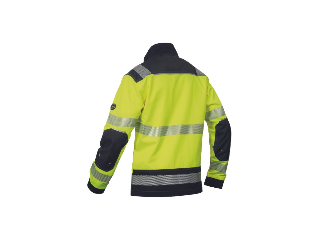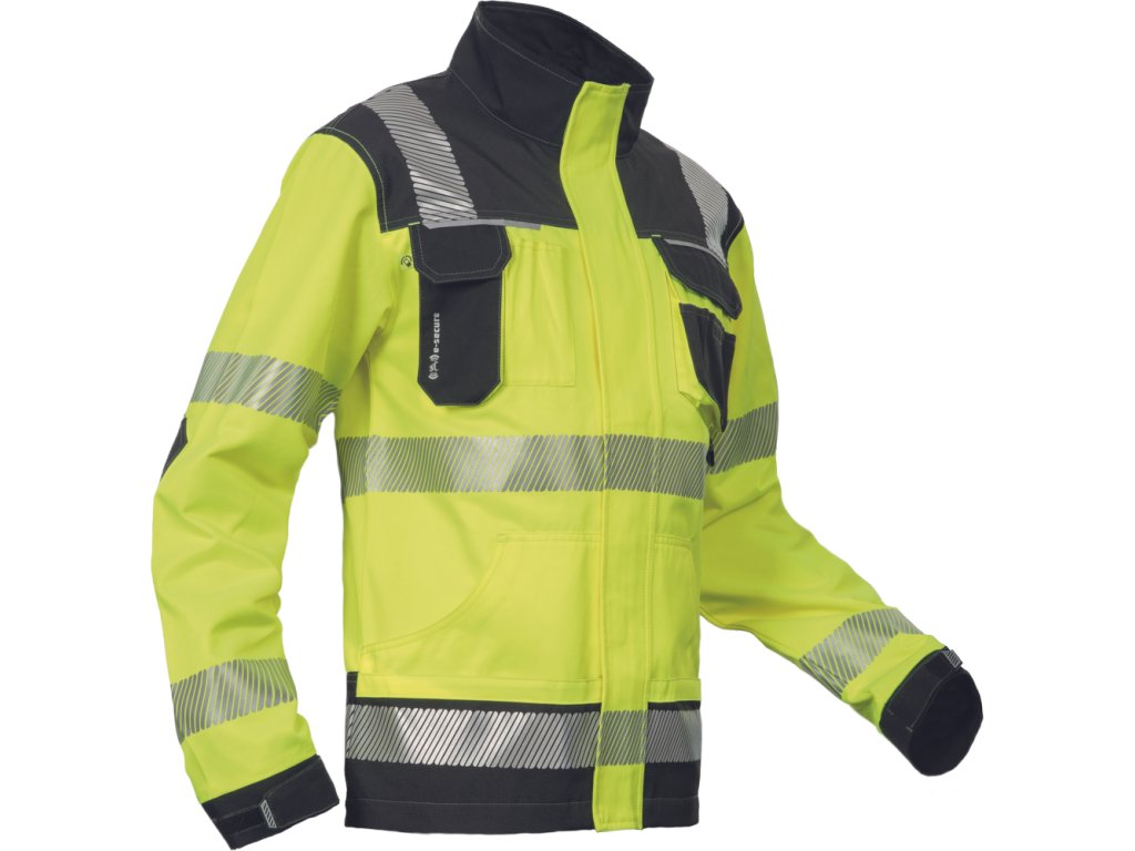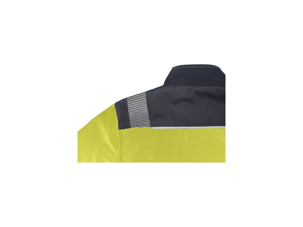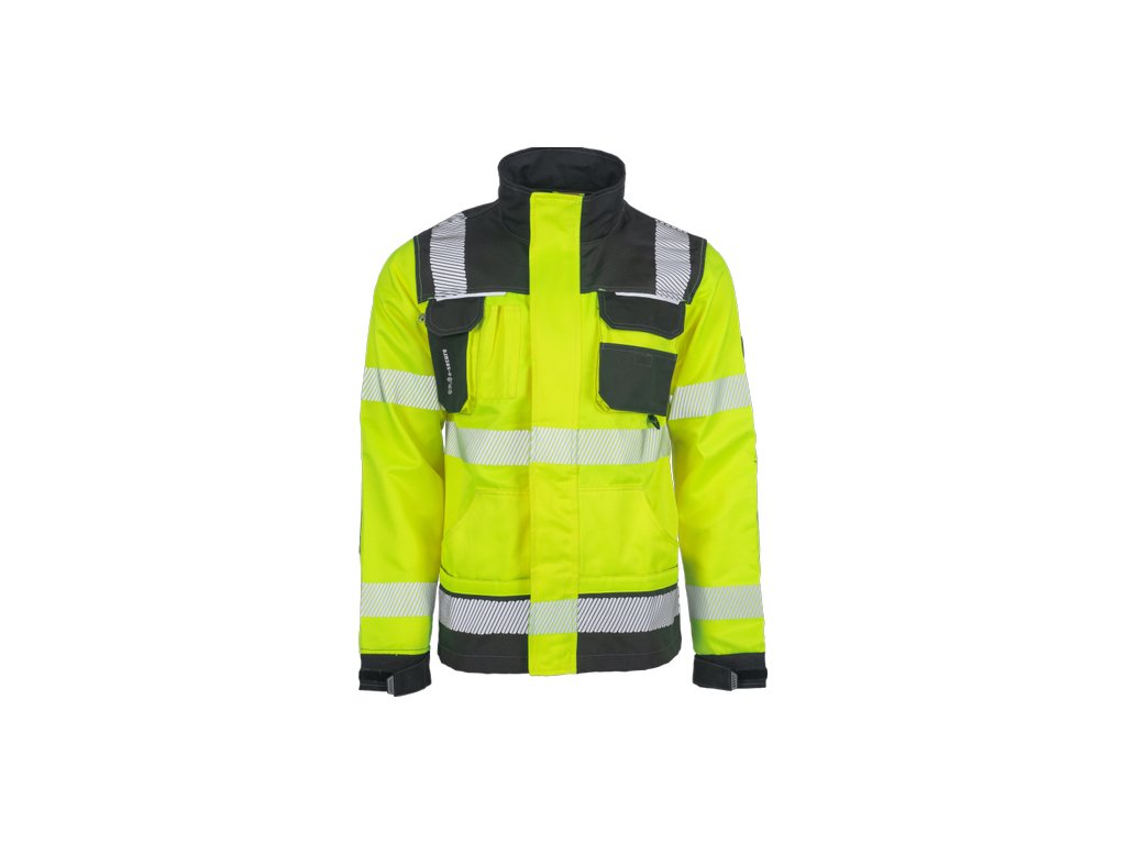 • pánská pracovní HI-VIS bunda • zapínání kryté légou na suchý zip • 2 přední kapsy • 2 náprsní kapsy • 1 náprsní kapsa na mobilní telefon • Oxford 600D zesílení loktů a ramen • tištěné reflexní segmentované 5 cm pruhy okolo pasu, rukávů a přes ramena • kontrastní prošití
